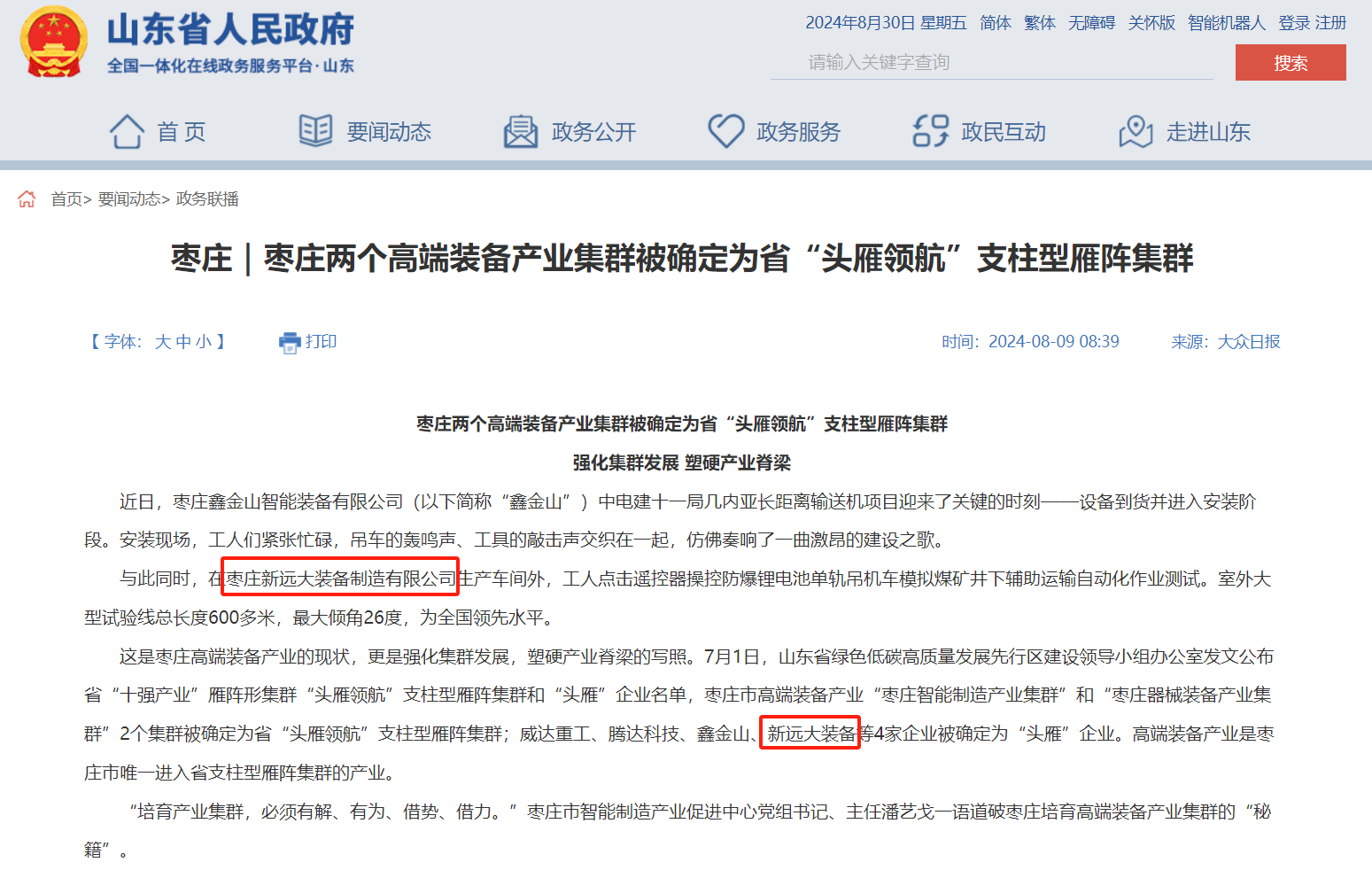 喜訊!今年8月我公司榮耀入選山東省“頭雁”企業(yè)名單。7月1日,山東省綠色低碳高質(zhì)量發(fā)展先行區(qū)建設(shè)領(lǐng)導(dǎo)小組辦公室發(fā)文公布省“十強(qiáng)產(chǎn)業(yè)”雁陣形集群“頭雁領(lǐng)航”支柱型雁陣集群和“頭雁”企業(yè)名單,棗莊市高端裝備產(chǎn)業(yè)“棗莊智能制造產(chǎn)業(yè)集群”和“棗莊器械裝備產(chǎn)業(yè)集群”2個(gè)集群被確定為省“頭雁領(lǐng)航”支柱型雁陣集群;其中我司被確定為“頭雁”企業(yè)。