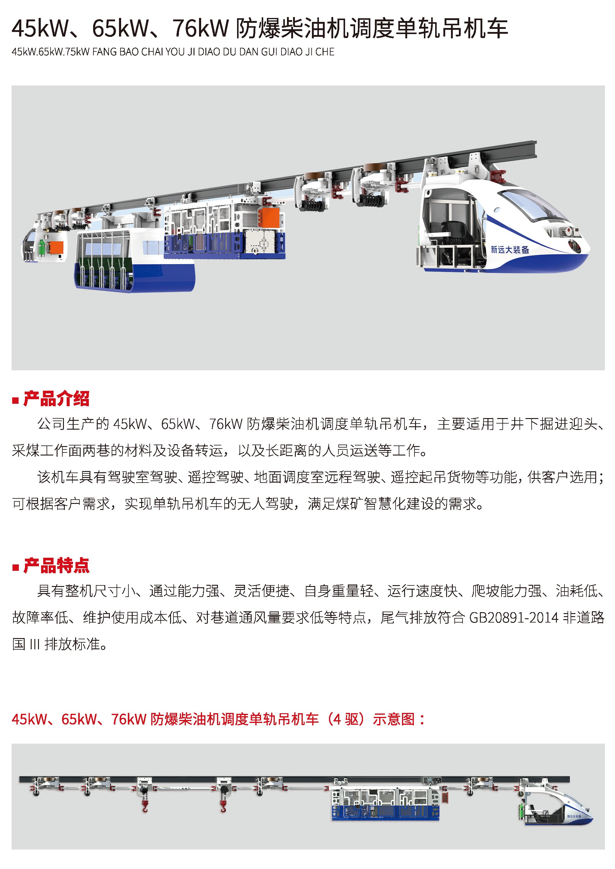 防爆柴油機(jī)單軌吊機(jī)車